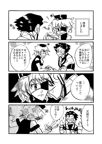 とりあえず女性向け注意! …って言ってもゆるいというかそういう雰囲気というだけですが… とり肉さんが製作しているハルクロRPGで萌え滾ったのでついつい… だってジェイドさんが右とか萌えるしかないじゃないか…! げふんげふん… そんな訳でドクター×ジェイドさん。 船医が副船長に手を出した模様。
