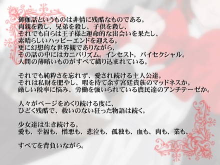 やりたいこととか盛りだくさんなんですよ。 いや、オンリー本ももちろんやりたいことの一つなのですが… とりあえず描きたいもの。 ①大正浪漫な裕福な家の書生さんと母娘の三角関係ほのぼの(短編) ②明治~大正のヤンデレ医師達の根暗ミステリ(長編、前後編) ③メトロポリス~さよなら、アインシュタイン~(長編、読みきり) ④未来系、海だけの世界になった地球と戦う乙女達(長編、連載) ⑤オリナビ漫画(長編、連載) あと今回うpった何かのプロローグですが… オリナビの御伽話モチーフのキャラたちによる根暗なビジュアルノベルゲームとか… どれ選んでもほぼバッドエンドみたいな… ゲーム作成にも久々に取り組みたいです。 とりあえずあれだ、時間と、速さと、根気を…
